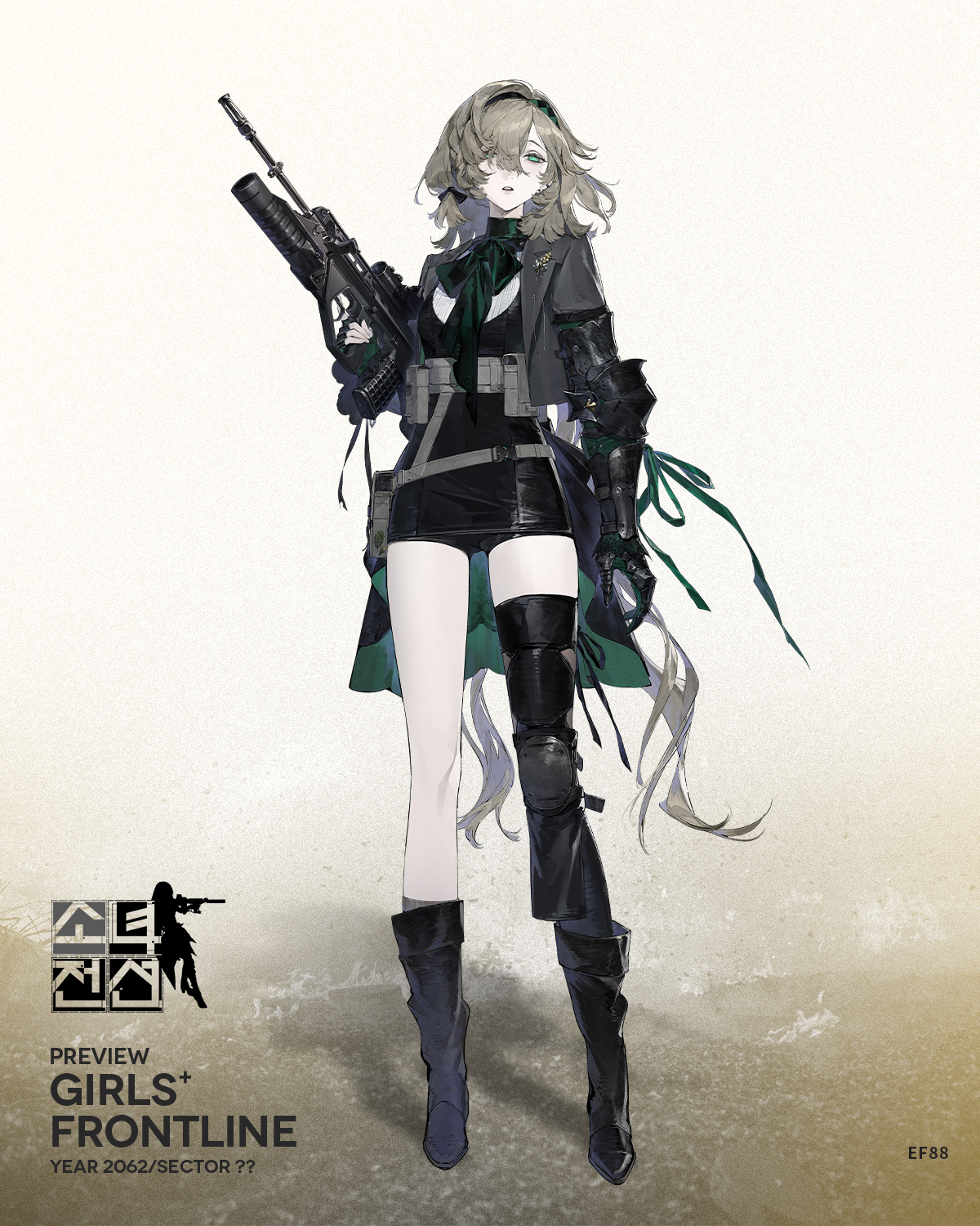 안녕하세요, 지휘관 여러분! 9월 26일 점검 후 인형제조에 추가되는 5성 돌격소총 인형 「EF88」을 소개해 드립니다! 항상 피곤해 보이며, 대부분의 일에 흥미를 보이지 않는다. 사교 활동을 무의미한 에너지 소모로 여겨 그리 좋아하지 않고, 혼자 음악을 감상하는 걸 선호한다. 자신의 능력에 대해서는 명확히 인지하고 있으며, 자만하지도 겸손을 가장하지도 않으며, 항상 중요한 순간에 굉장한 실력을 발휘한다.