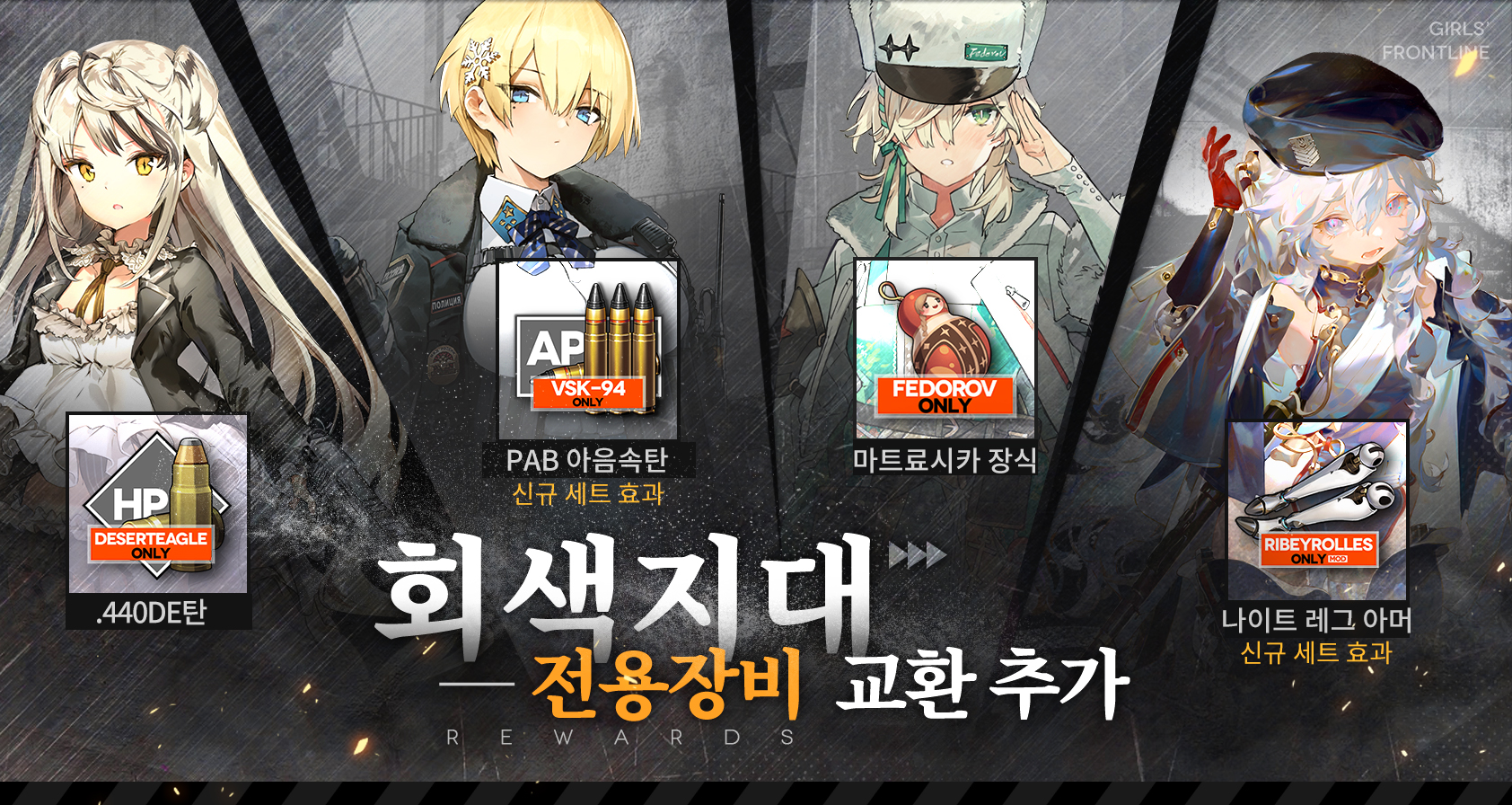 안녕하세요, 지휘관 여러분! “회색지대 탐사” 보상 내용이 11월 7일 점검 후 업데이트됩니다! 출현 전용장비와 구조 인형의 정보를 미리 알려드립니다!