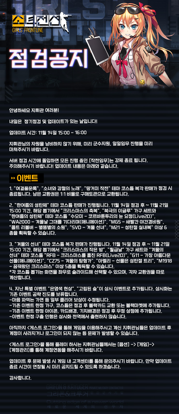 11월 14일 점검 및 업데이트 예고 – 소녀전선