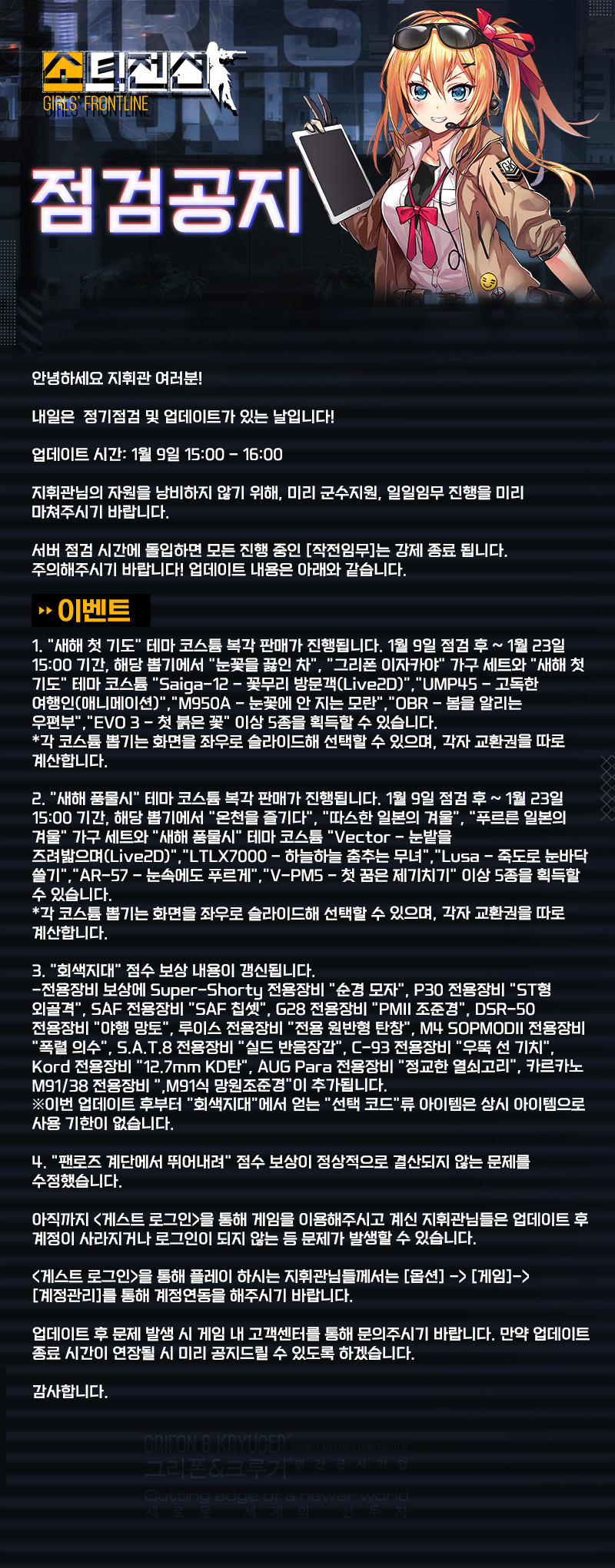 1월 9일 점검 및 업데이트 예고 – 소녀전선