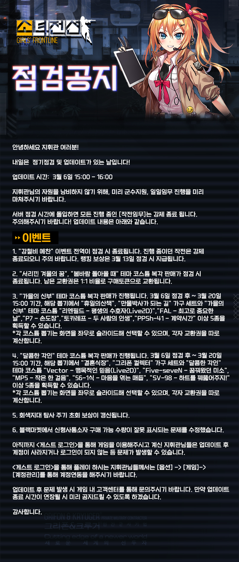 3월 6일 점검 및 업데이트 예고 – 소녀전선