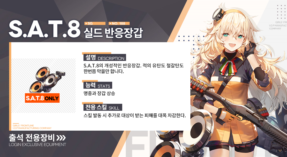 6월 출석 보상으로 얻을 수 있는 S.A.T.8 전용장비 “실드 반응 장갑”을 소개해 드립니다!