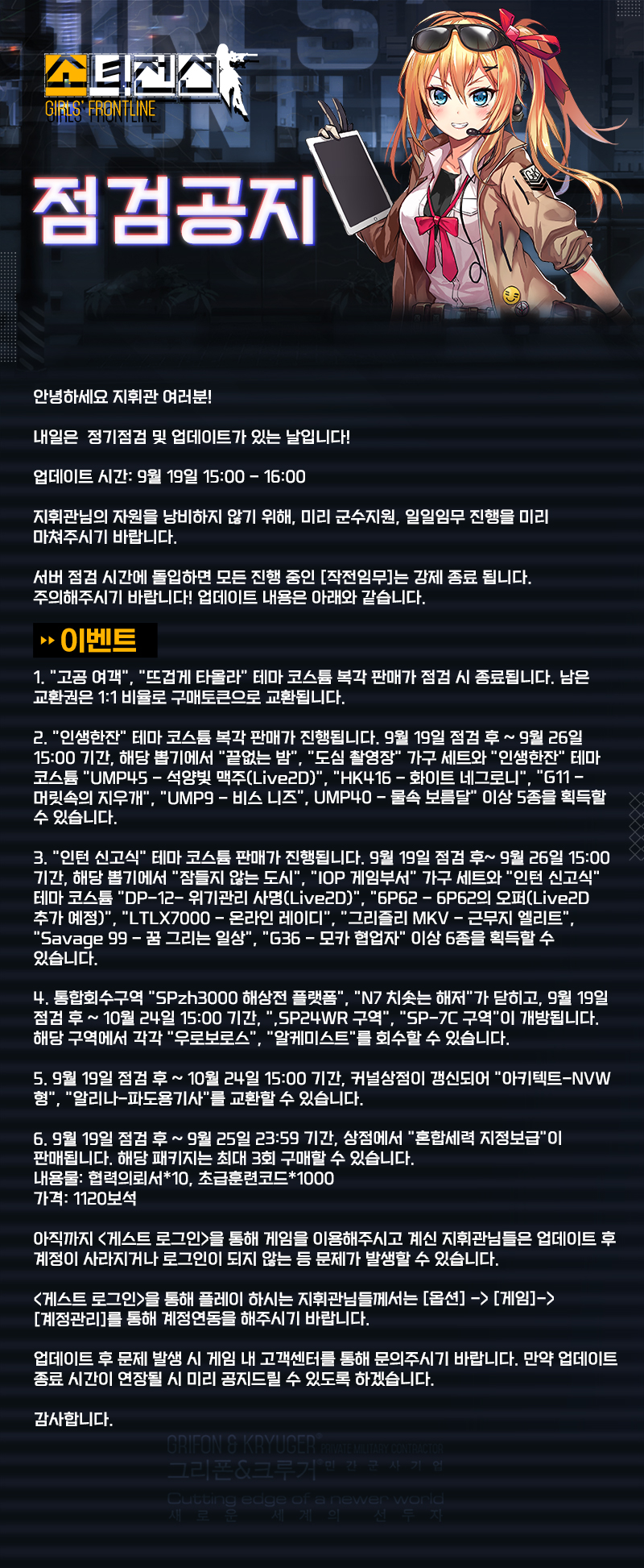 9월 26일 점검 후 인형제조에 추가되는 5성 돌격소총 인형 「EF88」을 소개해 드립니다!